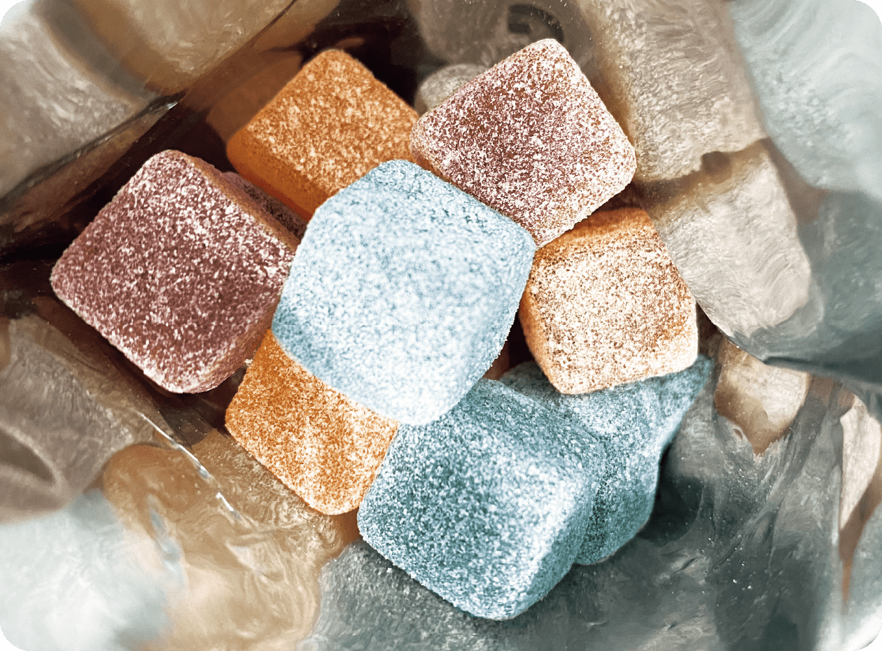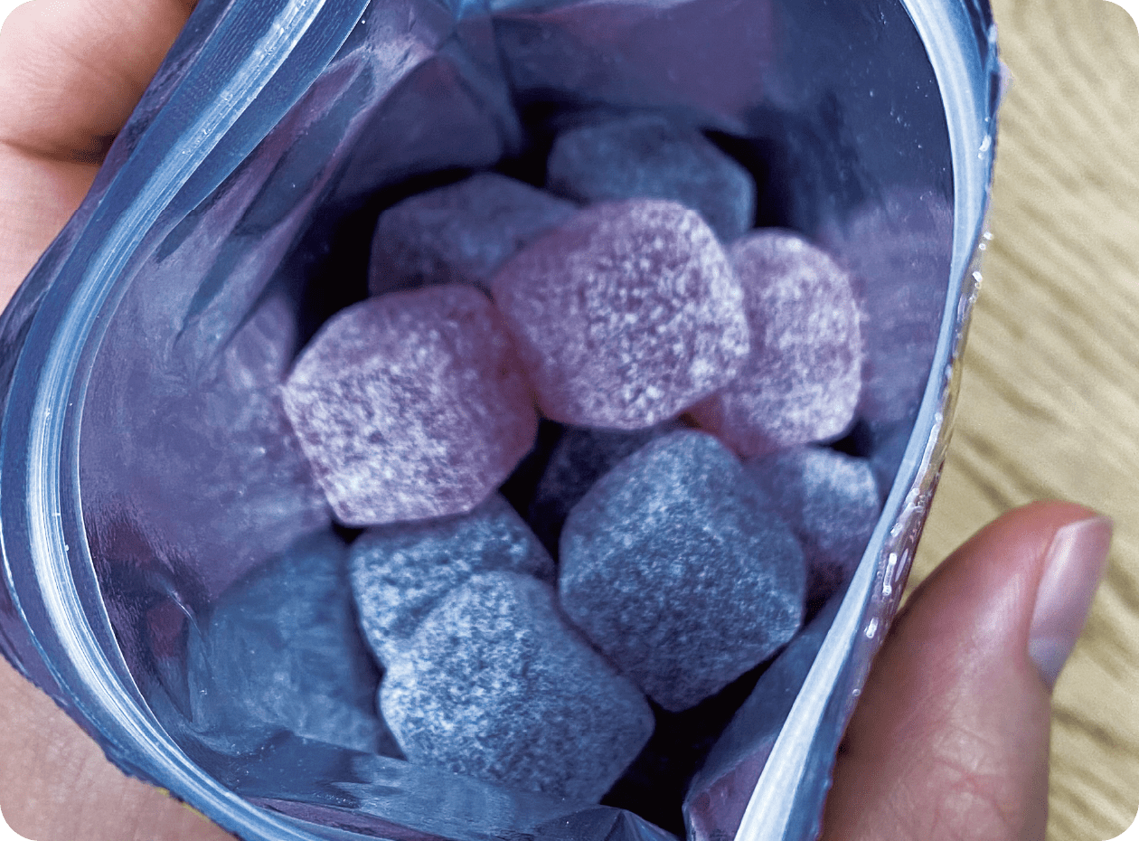 味はコーラ・ソーダ・エナジードリンクの3種類、直径1.5cmほどの見た目は普通のグミだが