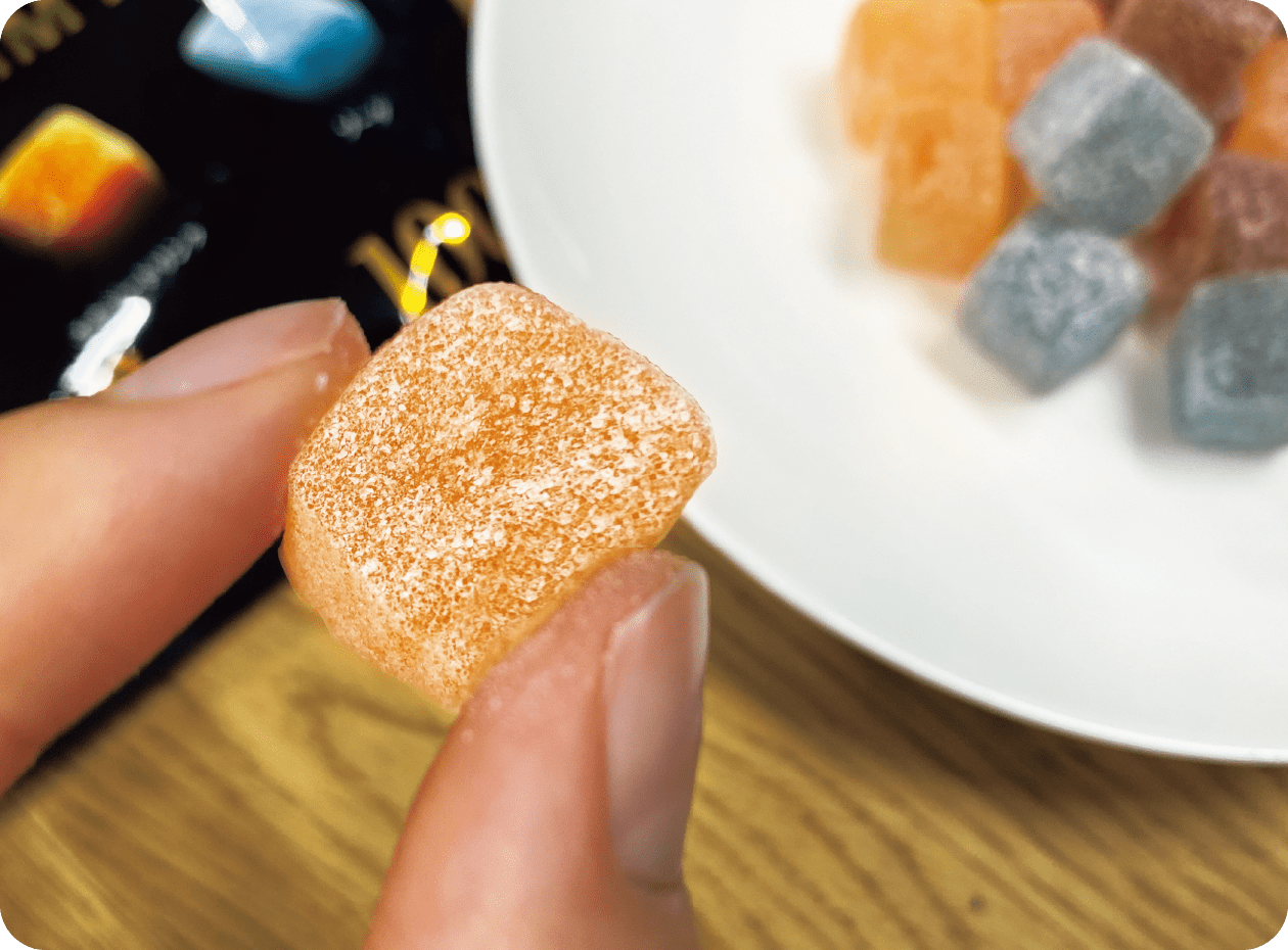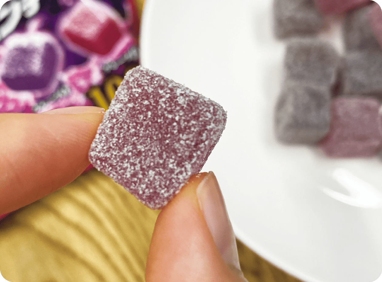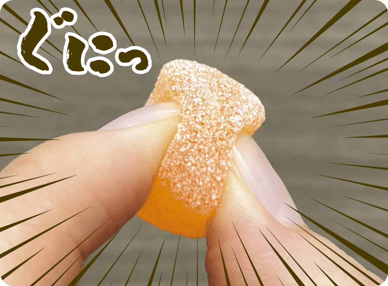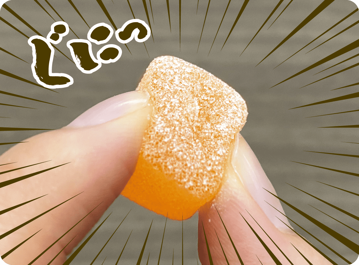 口に入れてまず感じるのは、弾力ありすぎ!!!普通のグミの食感とは違う!